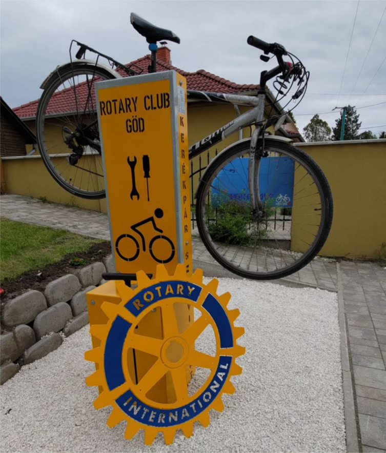 Először tavaly ősszel vetődött fel az ötlet, hogy telepítsenek egy önkiszolgáló kerékpárszerviz-pontot városunkban, a bicikliút mellé – írta honlapján a gödi Rotary klub. Több lehetséges, kiszemelt terület megtekintése és felmérése után végül a Kincsem Park mögötti – néhány évvel ezelőtt parkosított – terület mellett döntöttek. Ekkor készítették el az első vázlatokat a szerelőoszlopról, illetve a látványtervet a területről.