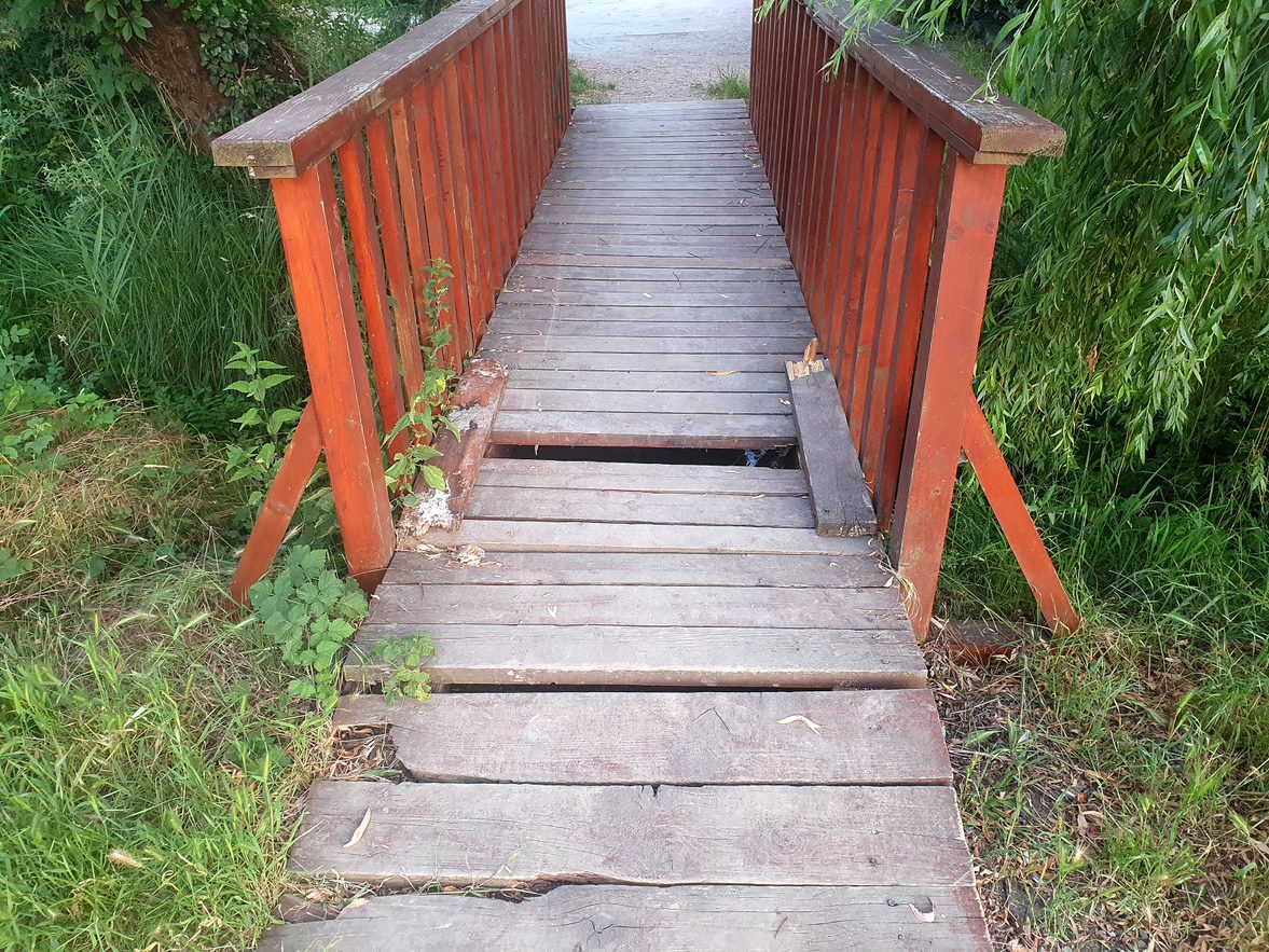 A helyszínen munkatársaink is észlelték a hibát, vagyis a híd megrongálódását (lásd mellékelt felvételünket). Lapunk úgy értesült, hogy a Településellátó Szervezet hamarosan elvégzi a szükséges javításokat. Bízunk benne, hogy mire a TüKörkép a postaládákba kerül, már végeznek is a munkával!