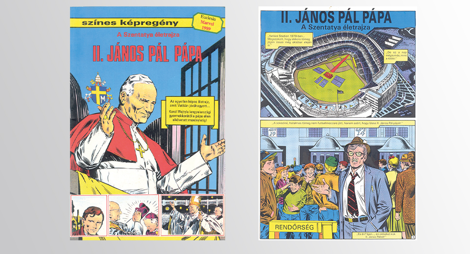 Minden bizonnyal a rendszerváltoztatás időszakának egyik talán mellékesnek is tűnő, mégis kiemelkedően fontos pillanata volt, amikor 1989-ben magyar kiadásban is megjelent a Szent II. János Pál pápa életútját feldolgozó képregény. Az egyetlen képes életrajz, amit a Vatikán jóváhagyott… Karol Wojtyla lengyelországi gyermekkorától a pápa ellen a vatikáni Szent Péter téren 1981. május 13-án elkövetett merényletig. Az Ecclesia Kiadó gondozásában megjelent igényes kivitelű füzet azóta már kultikussá vált a pápa tisztelőinek körében, hitoktatók elsőáldozásra adják ajándékba a nebulóknak, és szülők adják tovább gyermekeiknek, kézről kézre, mint valami féltve őrzött családi ereklyét. Mi lehet hát ennek a csodálatos kiadványnak a titka?